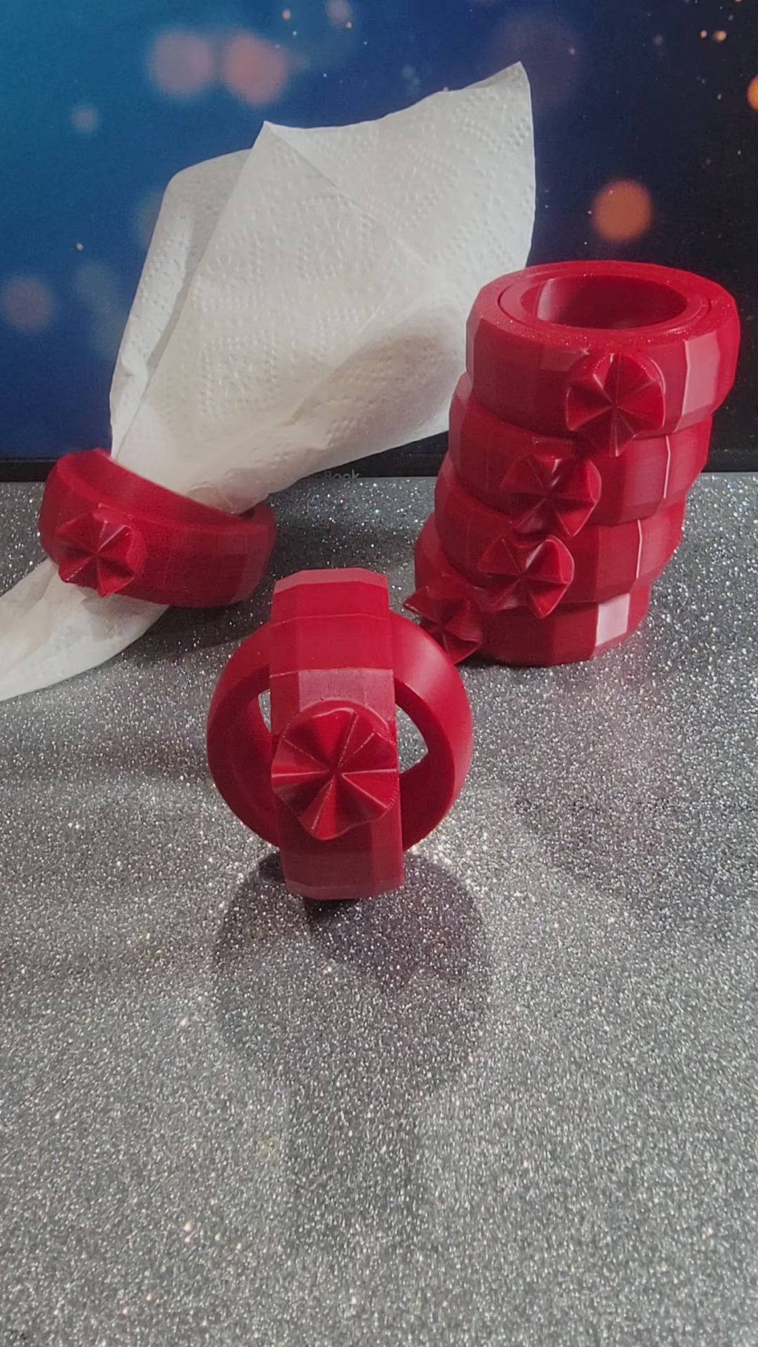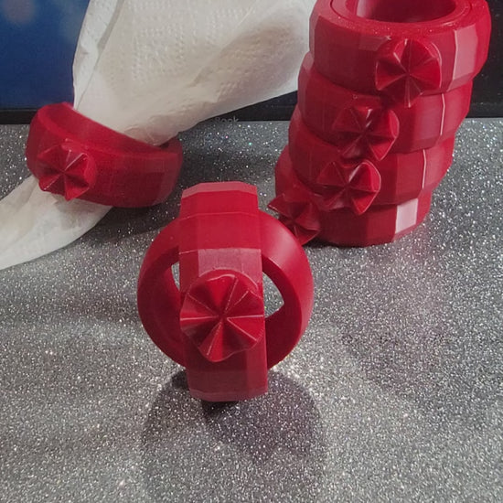 Elevate your table setting with the Geodesic Pomegranate Napkin Ring, featuring a stunning red pomegranate-inspired design. Crafted using an innovative 3D print-in-place process, this unique piece includes a smooth 360-degree spinning ring inside, adding interactive charm to your dining experience. Its intricate structure and custom manufacturing ensure a perfect blend of beauty and function, making every meal feel special and memorable.
